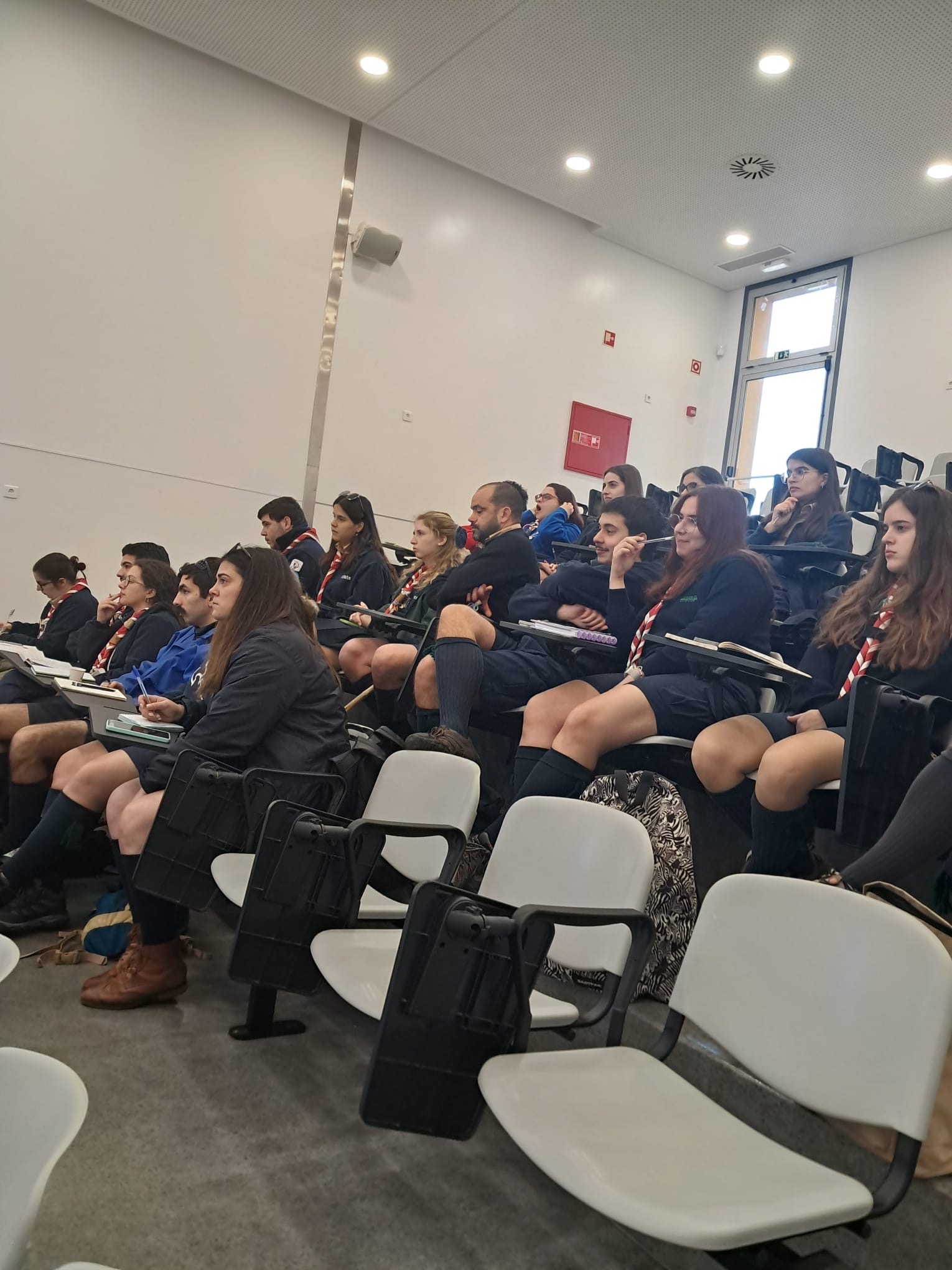 O encontro na escola D. Maria II contou também com a participação de 135 formandos, entre as formações de Sustentabilidade, Proteção Civil, Escutismo: Movimento Seguro. Foram ainda apresentados os relatórios de estágio do 11º PIF, um momento emocionante para os candidatos a dirigente, que marca a certificação de estarem prontos para fazer a promessa.